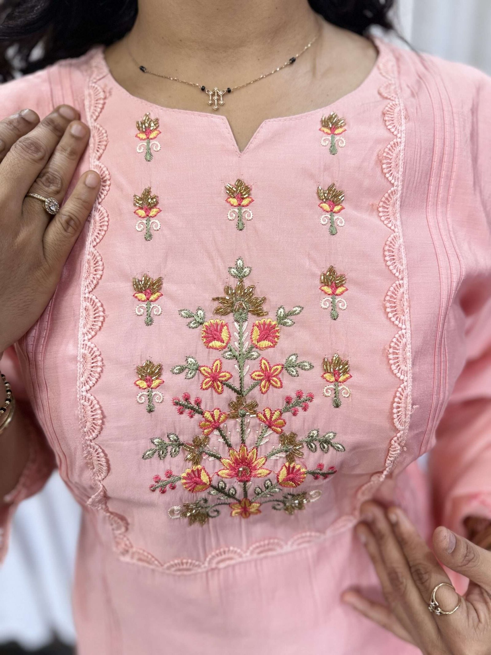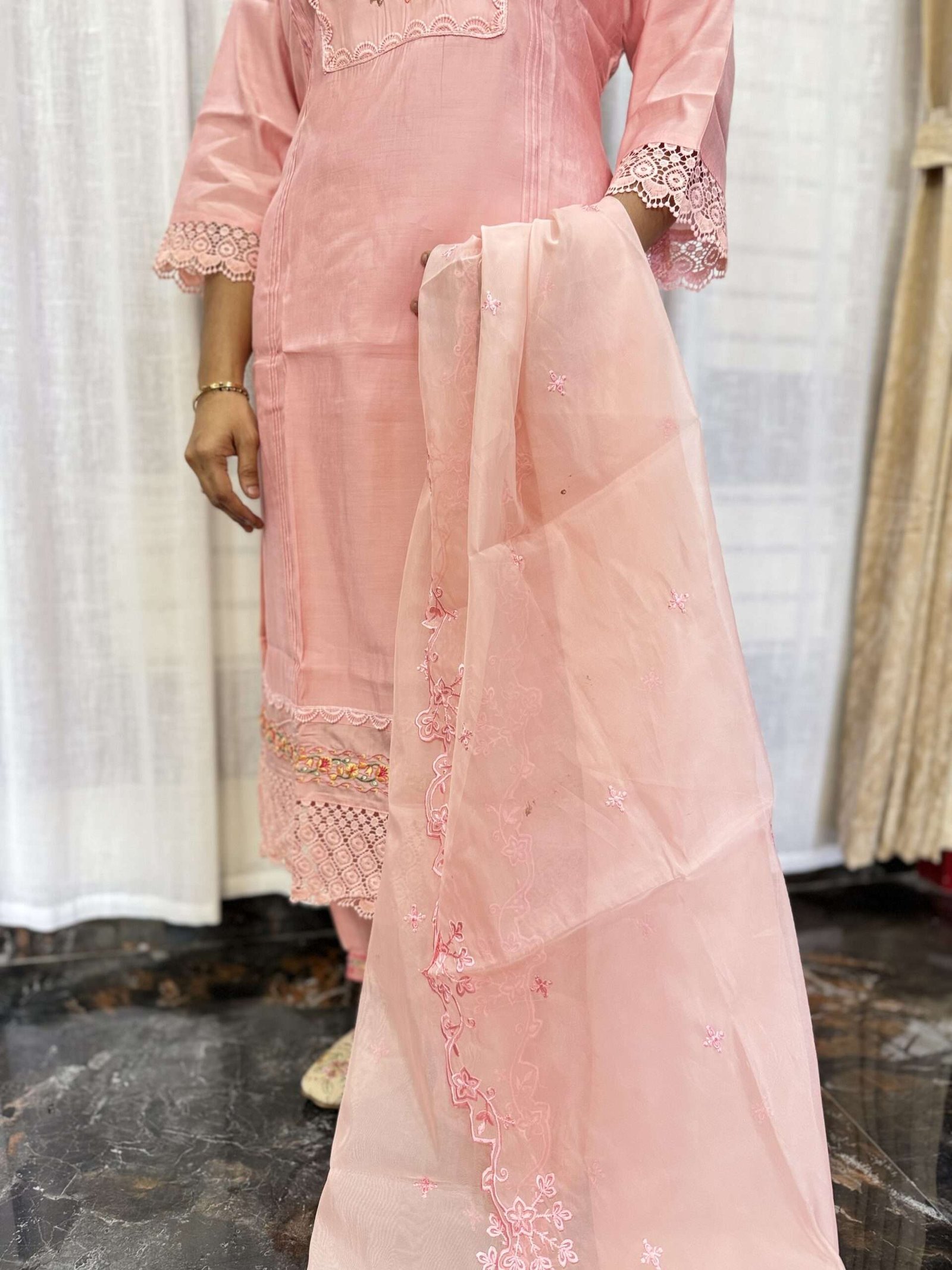 Viscose silk kurti set with maggam neck work, kurti lining only, and 2.3m organza dupatta