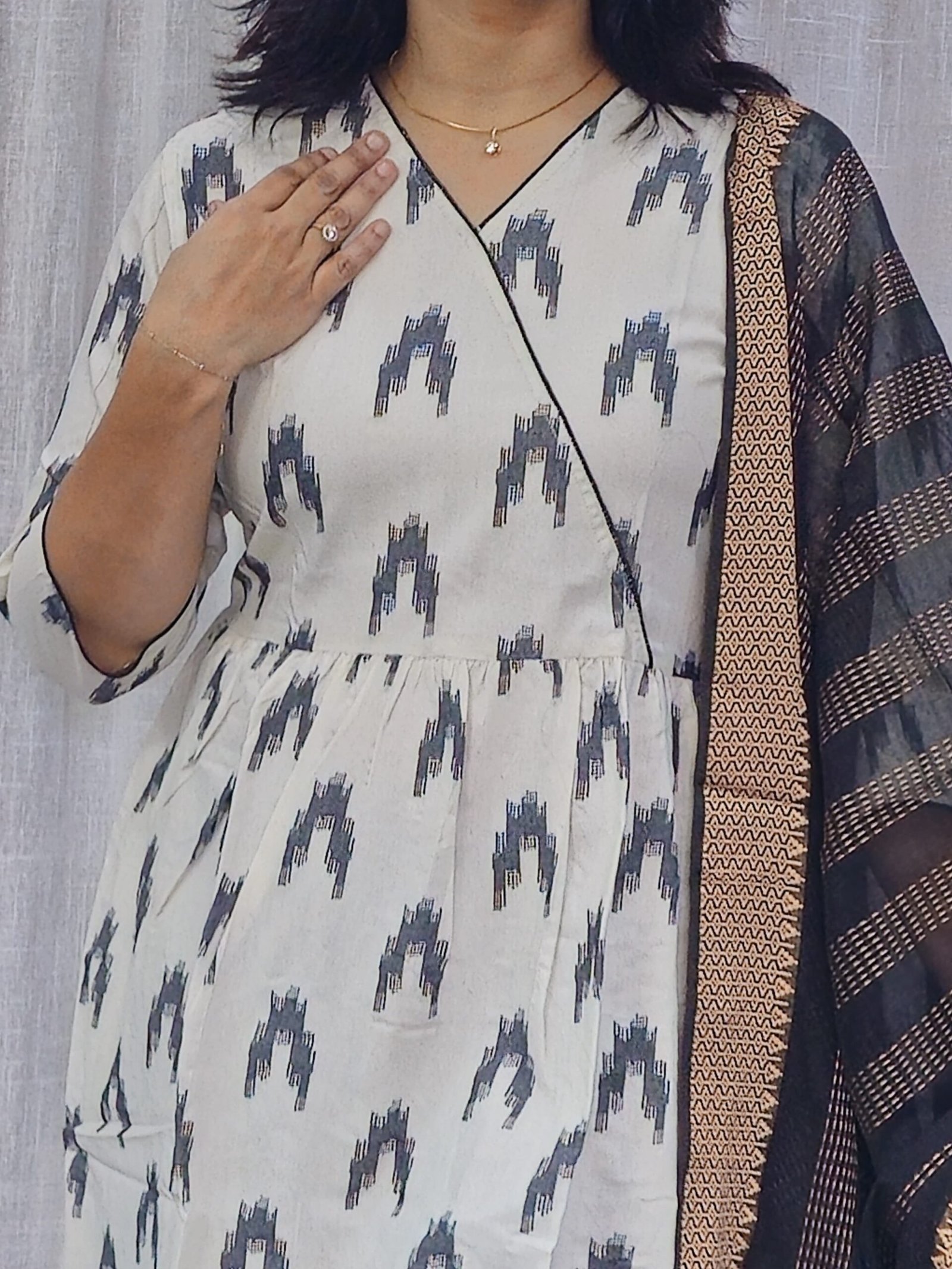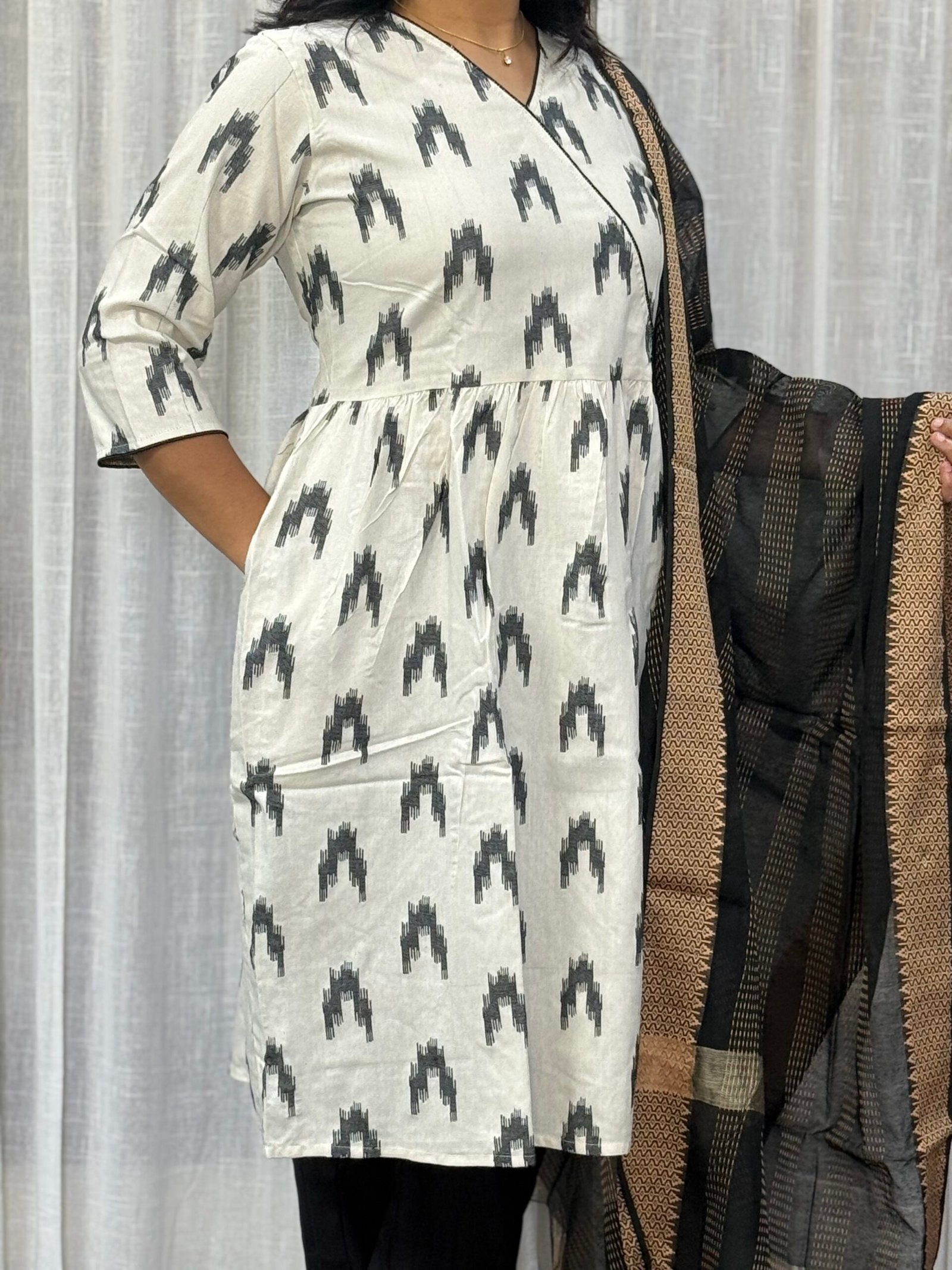 Pure Ikkat cotton kurti set with matching dupatta. No lining. Ideal for everyday ethnic wear.