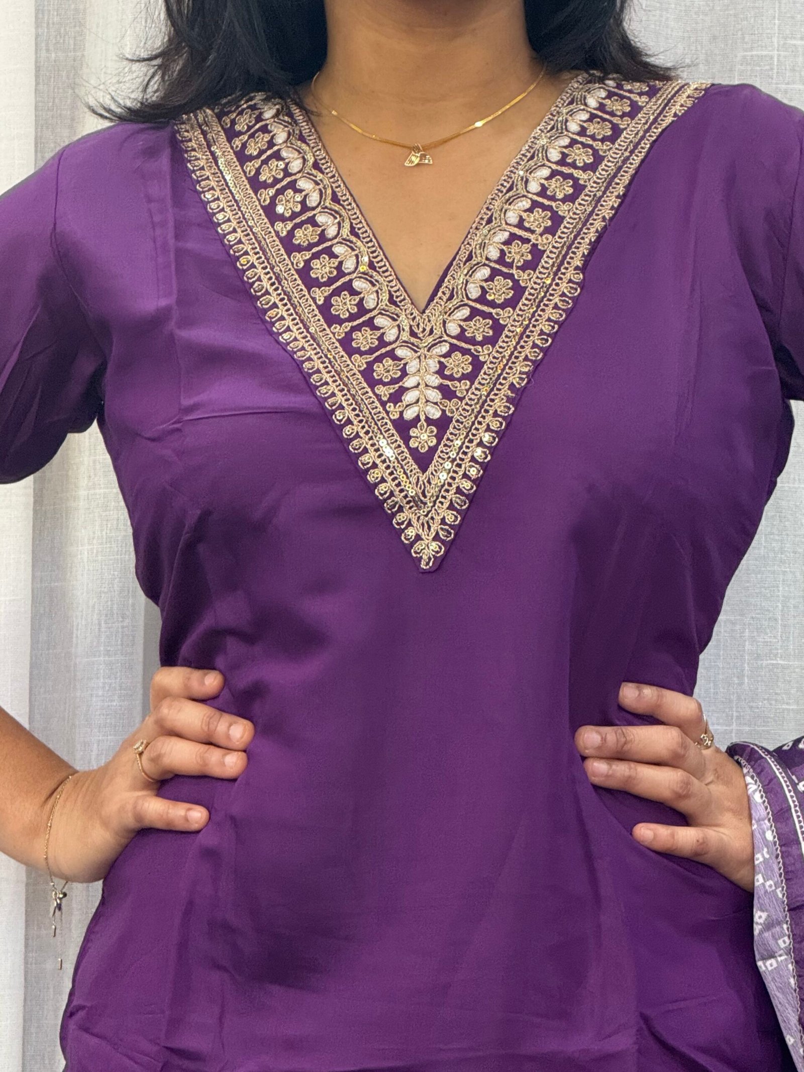 Set Includes: Kurti, Pants, Bandhani-style Silk Dupatta