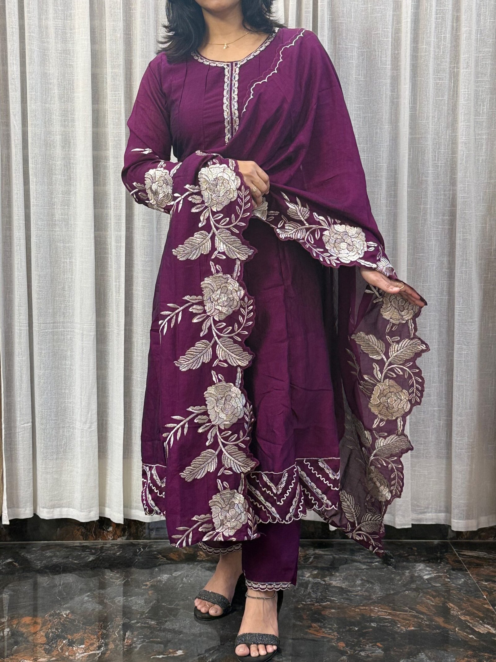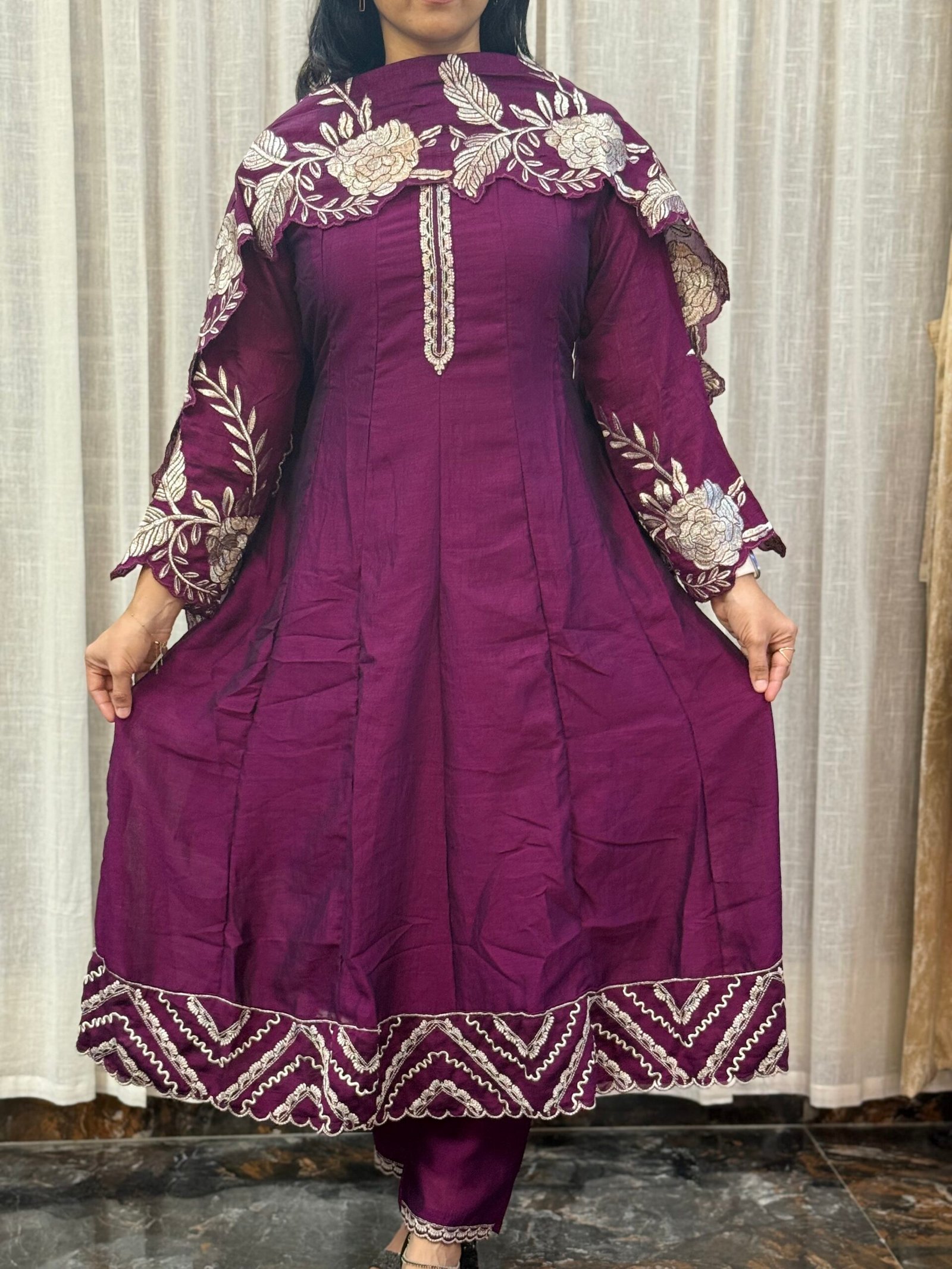 Vichitra silk kurti set with cut work